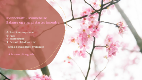 Presentasjon, Turid Undebakke Schweitz: Kvinnekraft - Kvinnehelse. Balanse og energi starter innenfra. Forstå nervesystemet. Små enkle grep i hverdagen.